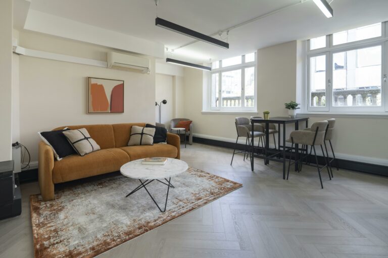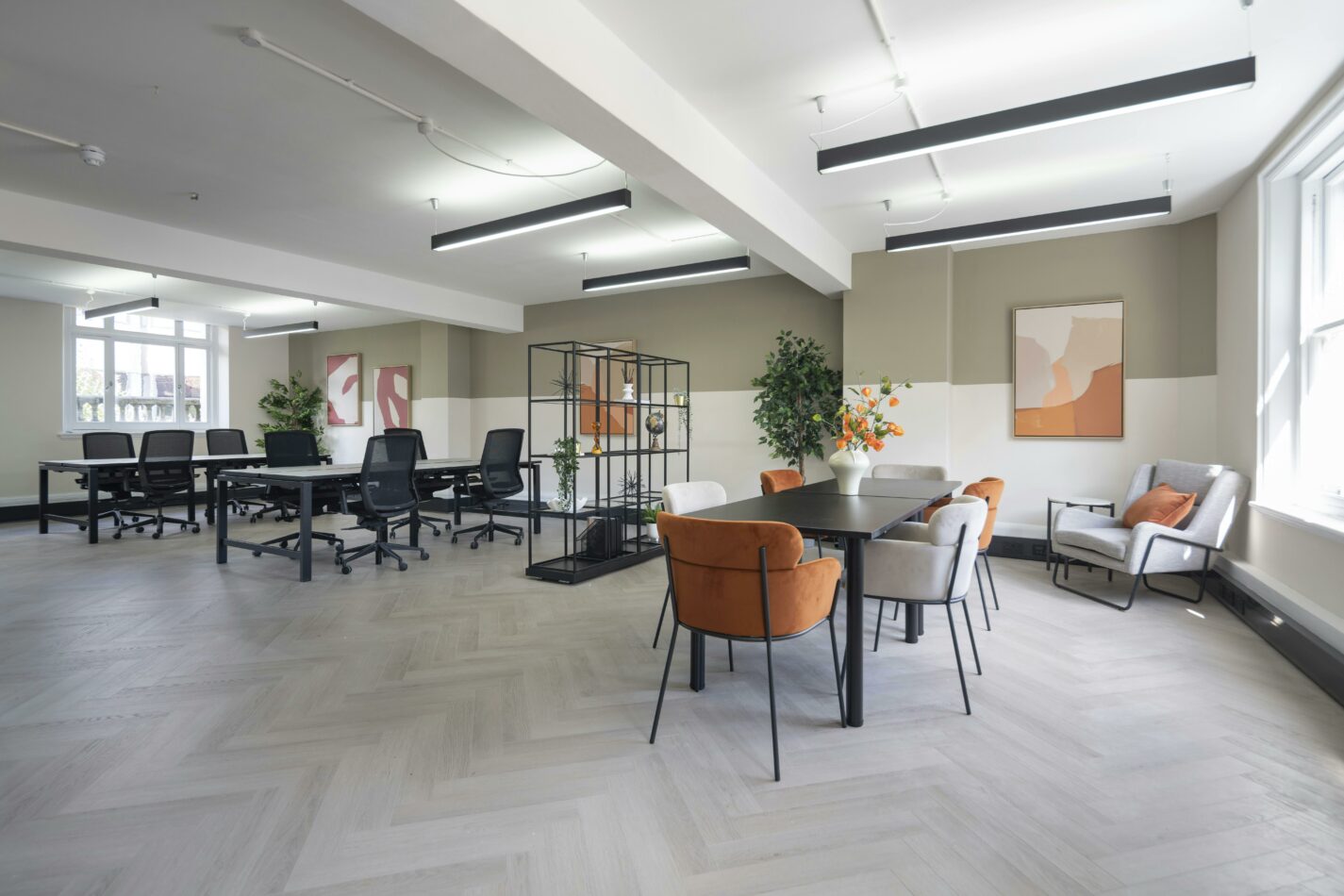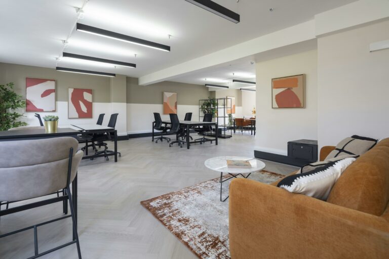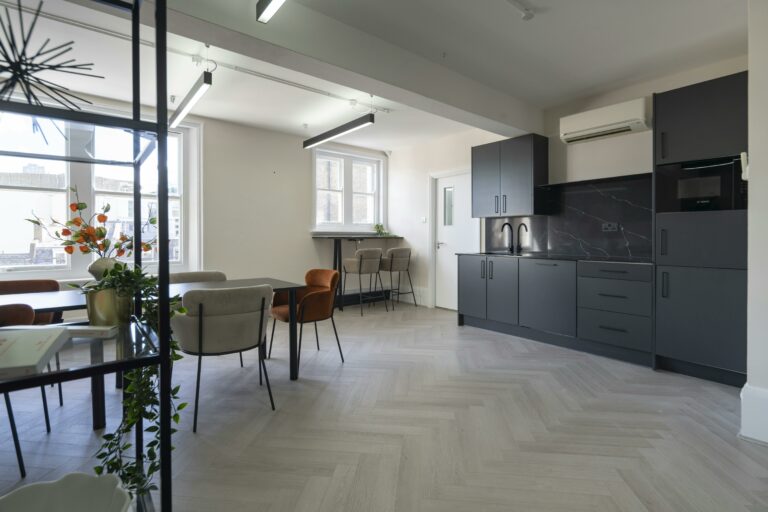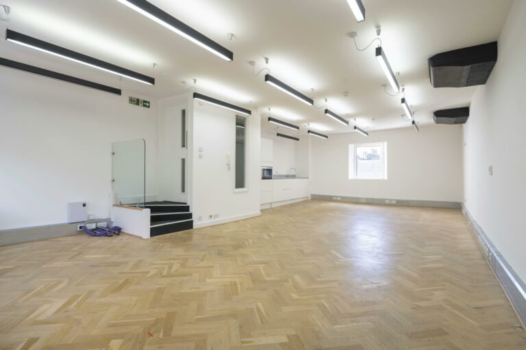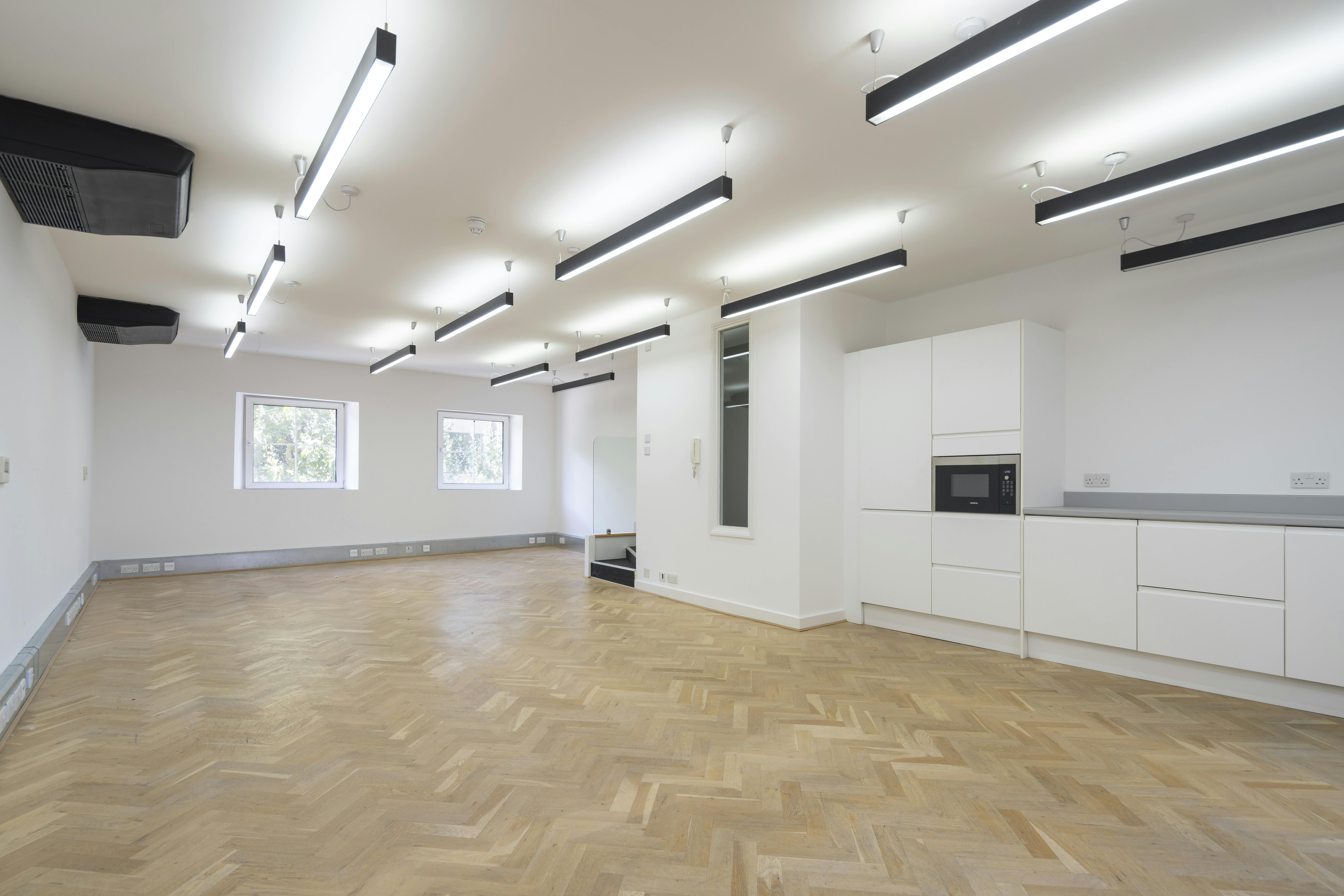 Unit 4.2 is a fully-fitted, bright, refurbished 4th floor workspace featuring an open-plan layout, generous ceiling heights, air-conditioning, and openable windows. The unit also benefits from a demised kitchen and WC facilities.