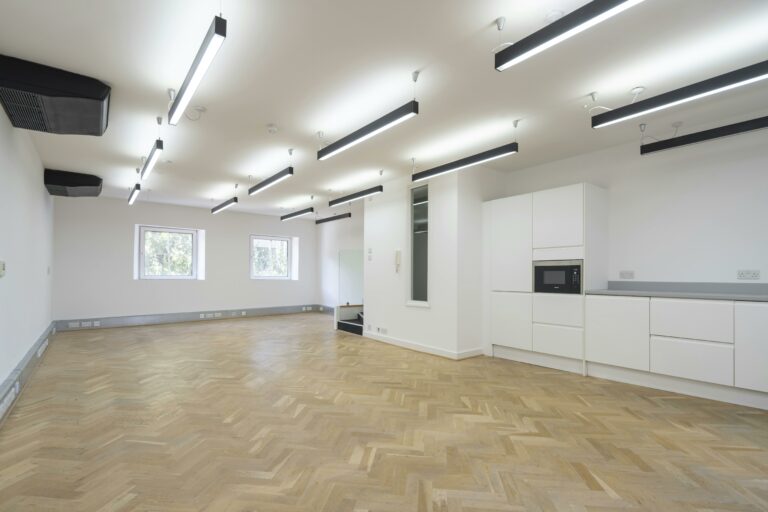 Unit 3.1 has been recently refurbished and offers 535 sq ft of versatile space, ideal for use as a workshop an/or office. The unit benefits from excellent natural light, enhanced by modern LED strip lighting, creating a bright and productive environment. It is equipped with air-conditioning units and a convenient kitchenette, in addition to having two entrance doors provide added security.