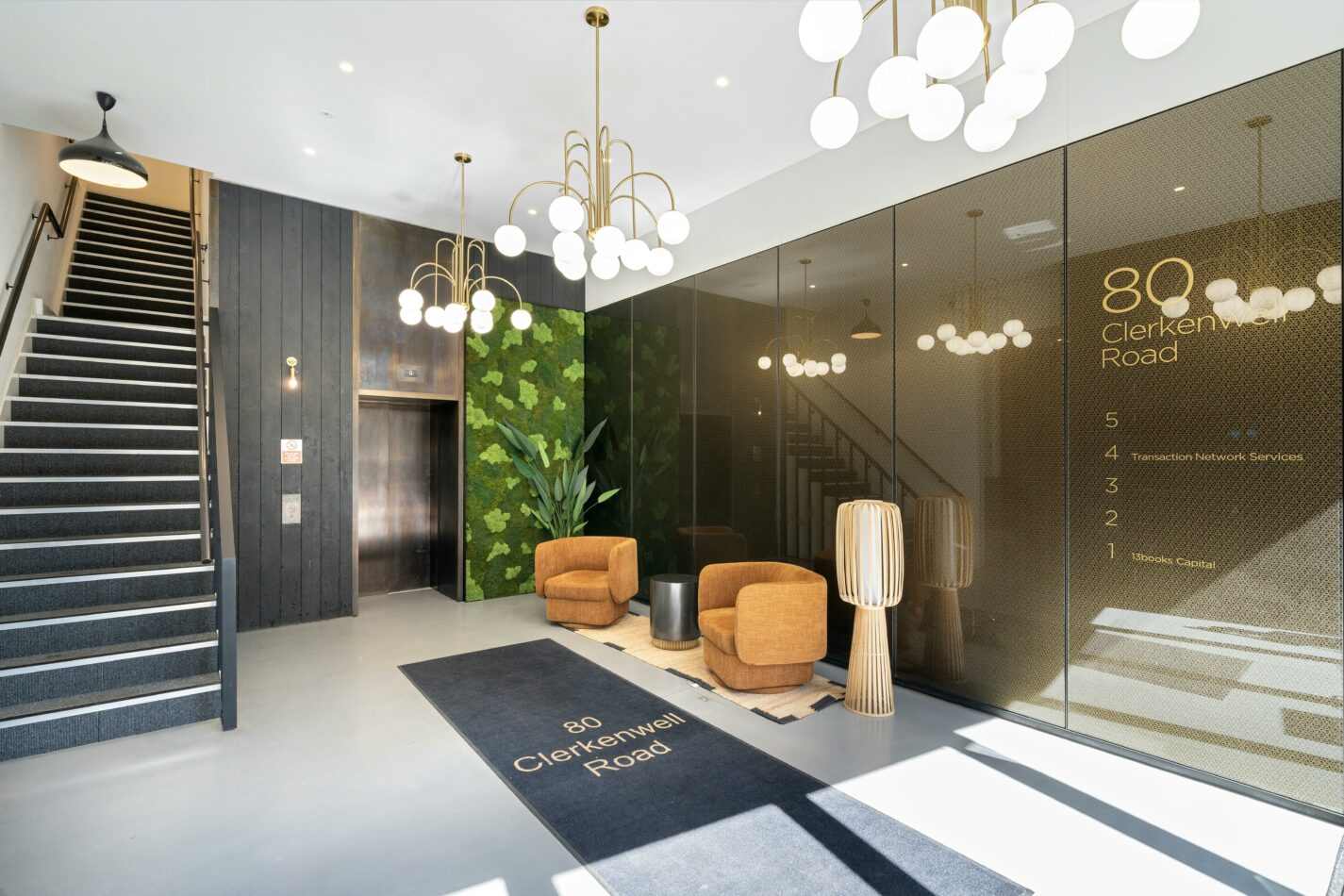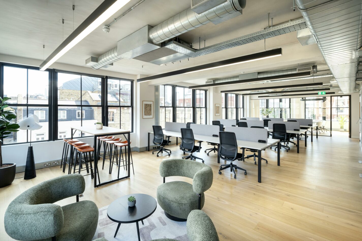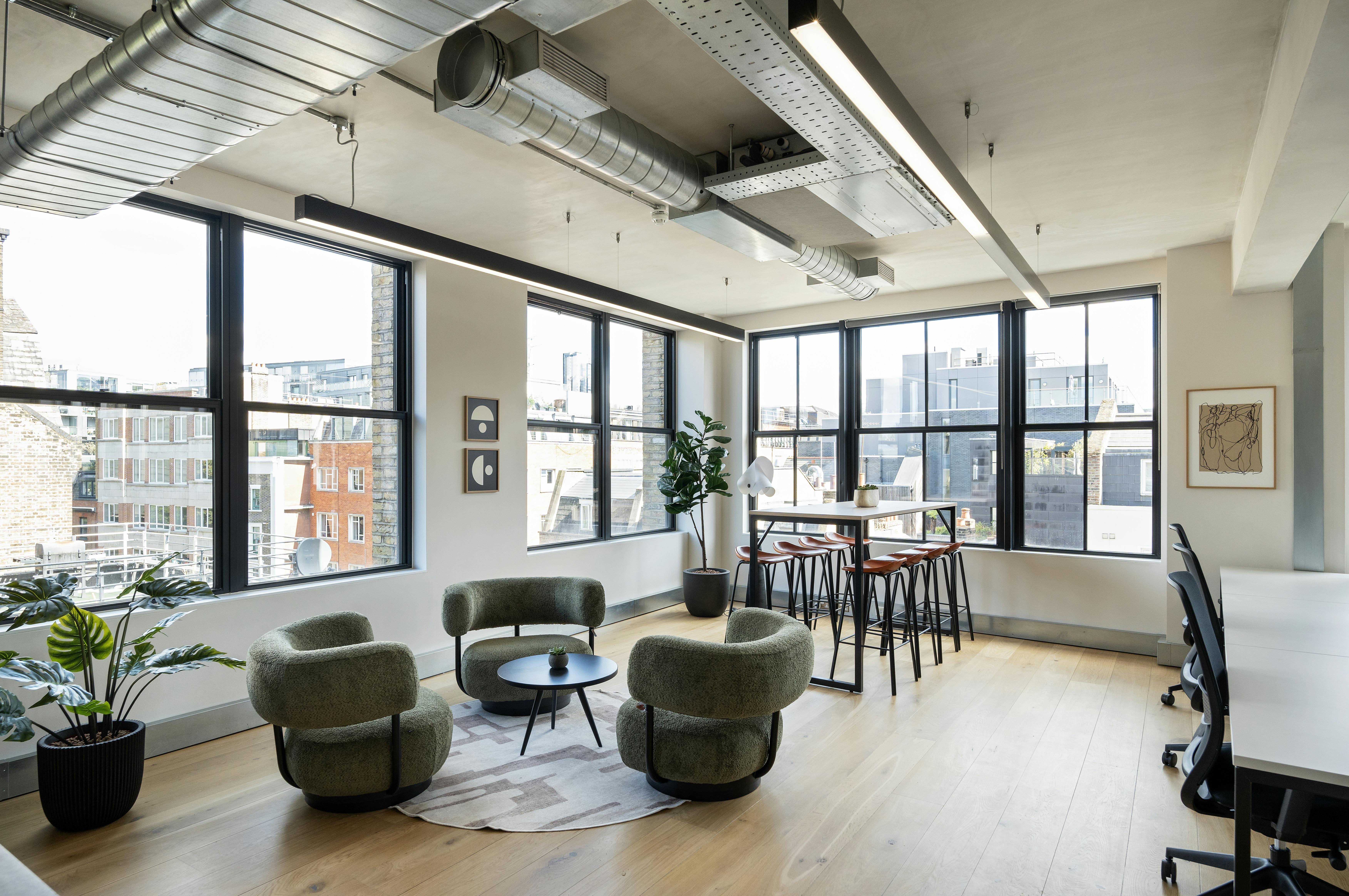 80 Clerkenwell Road is a characterful former warehouse on a prominent Clerkenwell corner at Clerkenwell Road and St John Street. The second and third floors have recently been refurbished to a high standard and come fully fitted, providing 18 desks, 3 meeting rooms, 3 phone booths, and generous breakout areas.